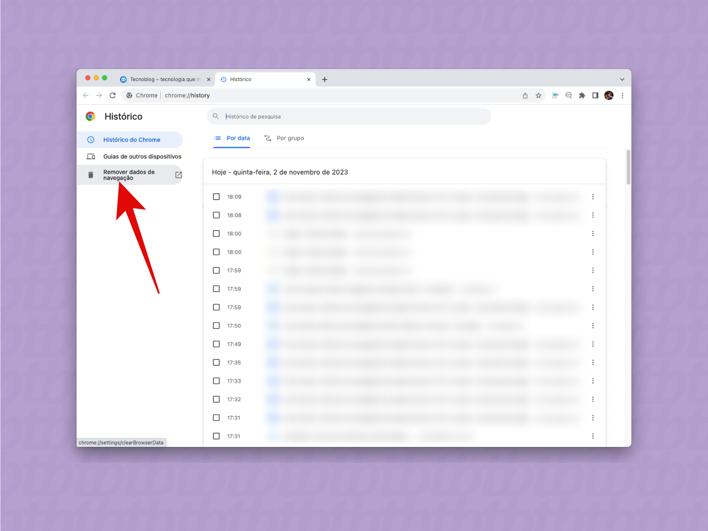 2. Selecione a opção “Remover dados de navegação”