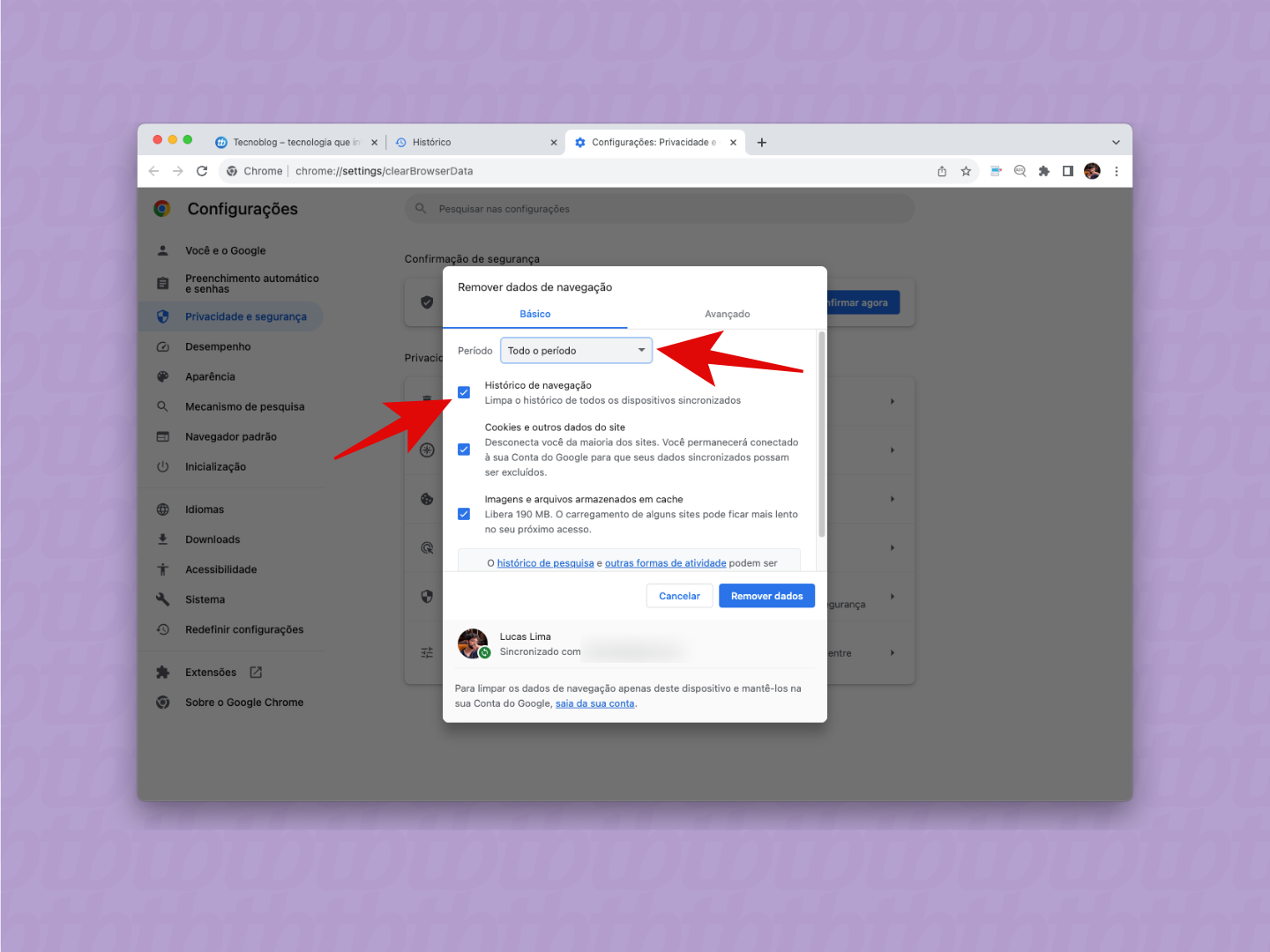 4. Faça a limpeza do histórico de navegação